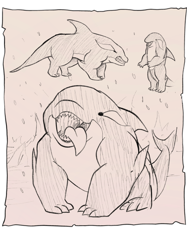 Marine lizards with several mouths all over their body. They resemble crocodiles, but with fins, a long tail, faster and thinner. Considered as a cataclysm for fish and other marine creatures since they are always hungry and actively looking for food. Due to their chaotic nature, their reproduction turns difficult, since they often want to eat their mates after procreating.