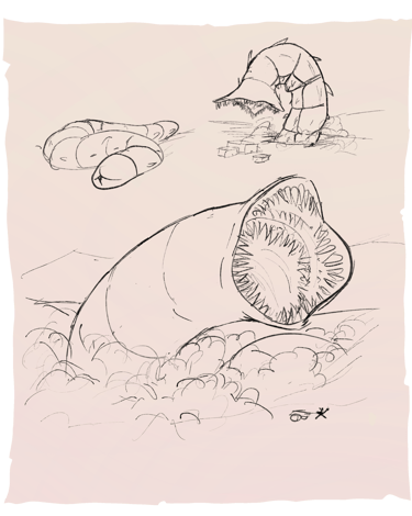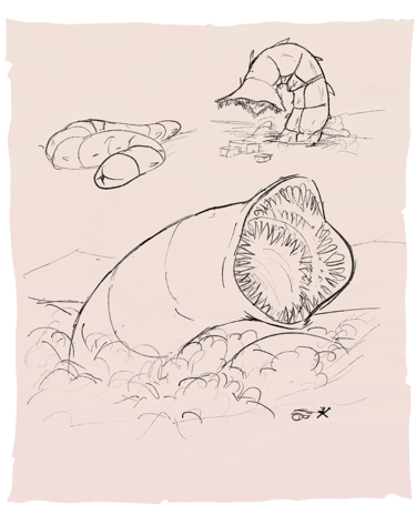 Colossal worms that live underground in deserts. They are primarily responsible for maintaining the balance of the arid ecosystem. Their constant underground movement helps ventilate foundations and drain stagnant water on the surface to create oases and fertile land. From time to time, they come to the surface when they sense extreme vibrations, mistaking them for mating calls. It is not recommended to cause extreme vibrations in the sand.